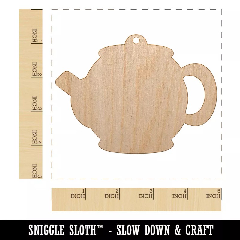 Sniggle Sloth Teapot Kettle Solid Unfinished Craft Wood Holiday Christmas Tree DIY Ornament