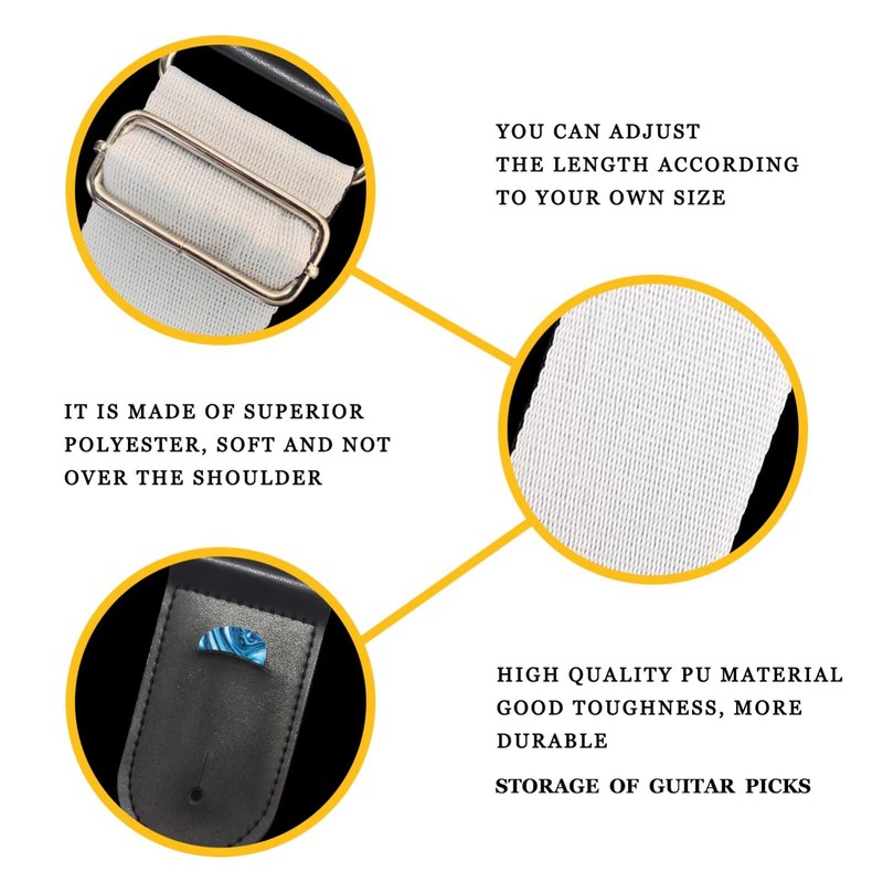 • 【 Set includes】1 guitar shoulder strap and 2 strap rope,2 strap locks. Adjustable strap suitable for most players, including male, female, and children's guitarists.