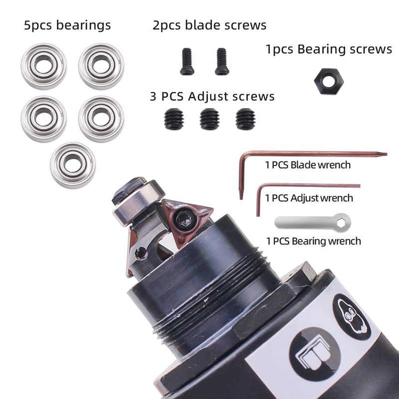 - 【Package Include】: 5 PCS Precision steel Pneumatic Chamfering Machine Bearing,1 PCS Bearing screws,2 PCS Blade screws,3 PCS Adjust screws,1 PCS Bearing wrench,1 PCS Blade wrench ,1 PCS Adjust wrench.