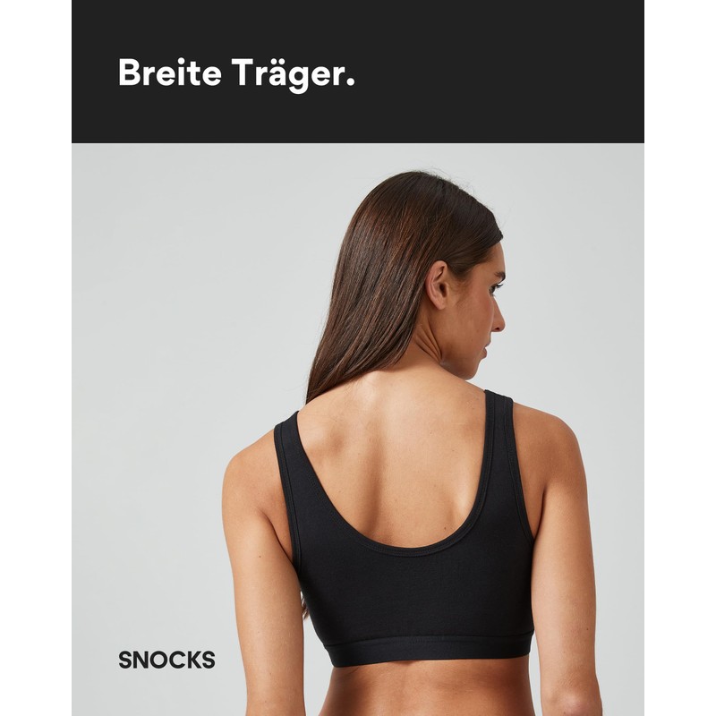 Snocks, Pack of 1, Soft Bra Bustier Women's Organic Cotton Comfortable Bra for Every Day, Yoga or Leisure, 1 x black.