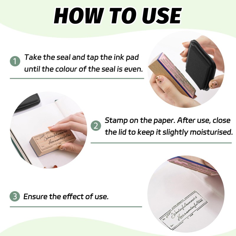 - 【Usage Tips】 Gently pat the stamp ink onto the seal to ensure even coloring before printing it onto the paper. Please cover the lid promptly after use to prevent it from drying up. Using makeup remover oil and detergent can clean accidentally contaminated ink