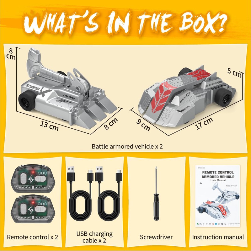 snookids Remote Controlled Car - Pack of 2 Remote Controlled Armoured Combat Vehicles Toy Children from 3 Years, Mini Car Scooter with Remote Control, Toy Car Gifts for Boys Girls