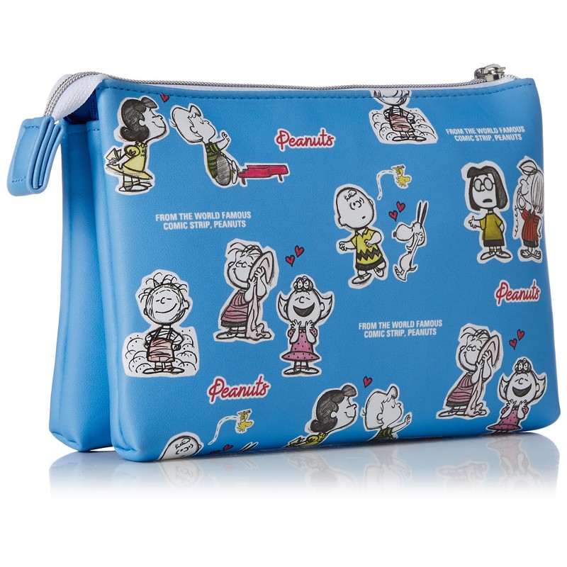 Snoopy 0308 Women's Cosmetic Pouch Travel Pouch Synthetic Leather PU Leather Face Charlie Brown (SPZ-2816), Blue (SPZ-2816)
