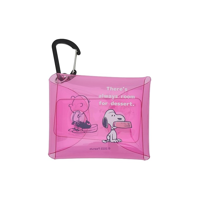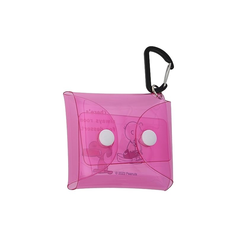 Snoopy Earbud Pouch, Small Storage Case, Mini Wired/Wireless Storage, Air Pods/Pro, Clear Multi Case, SS Size, Carabiner Included, Red (SPC-1167)
