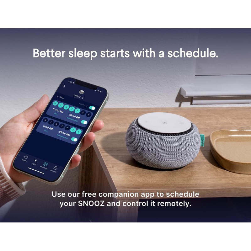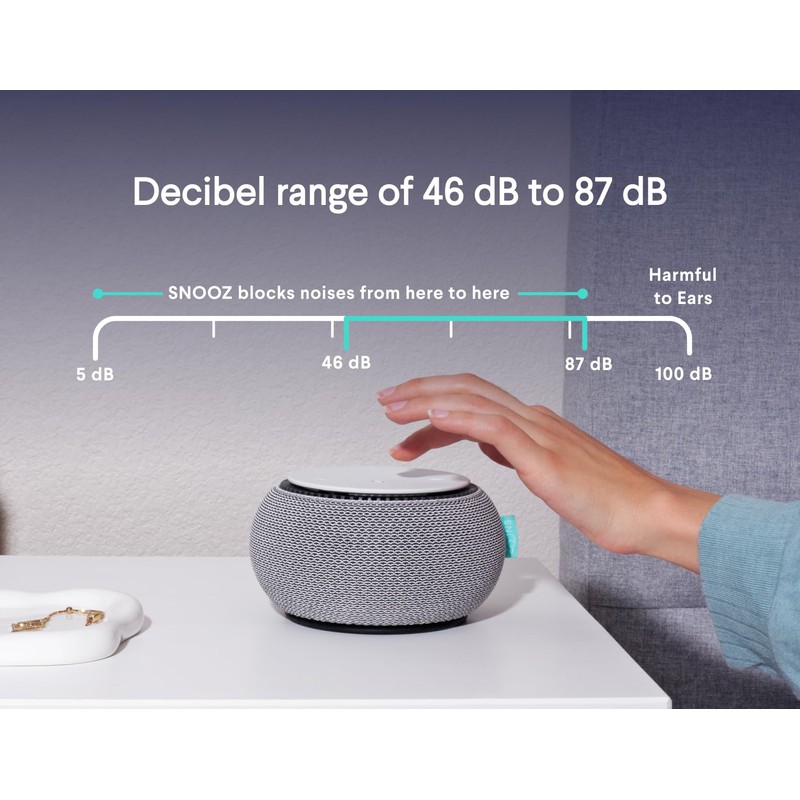 - Optional SNOOZ companion app includes remote control, programmable automatic on/off scheduling timer, night light, and first-ever nursery calibration to protect baby's ears (available for iPhone and Android)