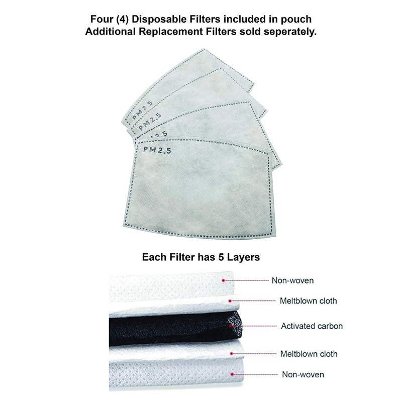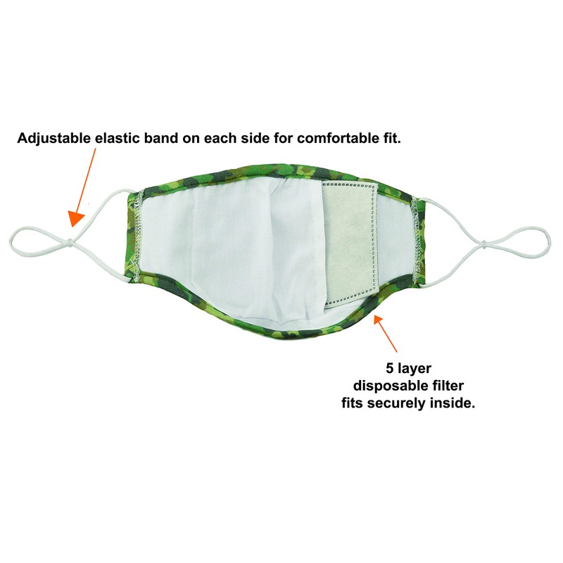 Snoozies face coverings are made with 3 layers of cloth fabric provides high protection. Machine washable face covering with filter insert pocket. Four of our 5 layer replacement inserts included. Flexible nose bridge for comfort fit will not fog eye glasses. Adjustable elastic ear bands for comfortable fit. Fits snug under chin for extra coverage. Adult Sizes Male and Female. This mask is not intended for medical use, and not proven to reduce the transmission of disease.