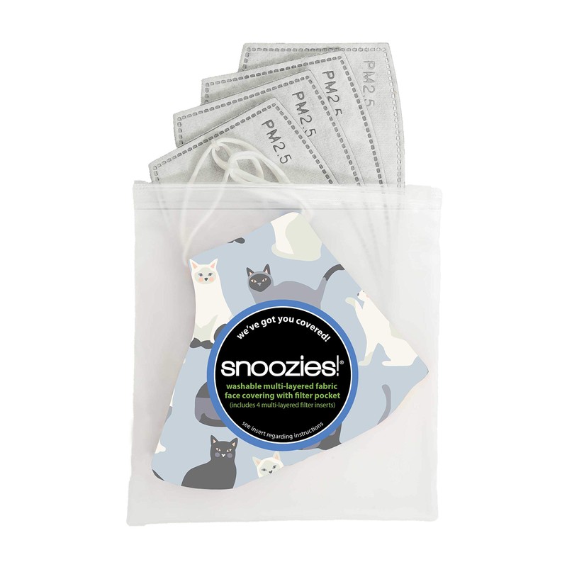 Snoozies 3-Layer Washable Face Mask w Filters & Nose Bridge - Multi Kitties