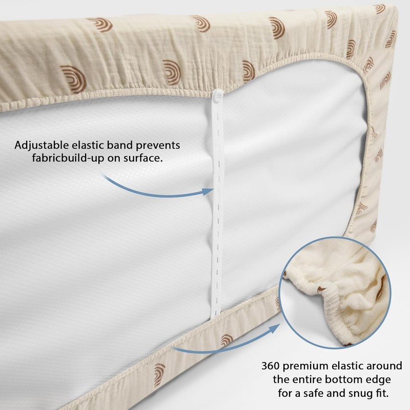 - ๐๐ฅ๐๐๐ฉ ๐๐ข๐ค๐ ๐ ๐๐๐๐ฒ- Our muslin pack-and-play fitted sheets are 100% cotton. Muslin cotton with extra soft comfortable touch and stays breathable. This fabric reduces the risk of overheating the baby, taking care to maintain the right temperature. Thanks to this, the child can enjoy comfort and satisfaction throughout the year. Another advantage of muslin is gaining only additional softness after repeated washing.