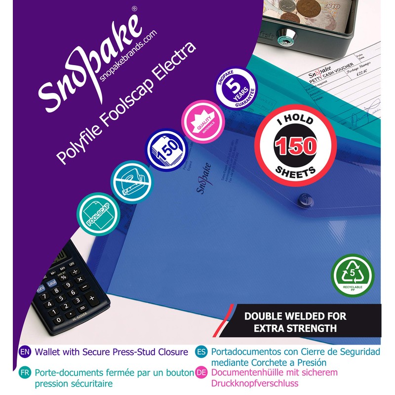 • The original envelope-style popper-wallet, Snopake’s Polyfiles are ideal for securing your documents, photographs and artwork in the home, school or workplace