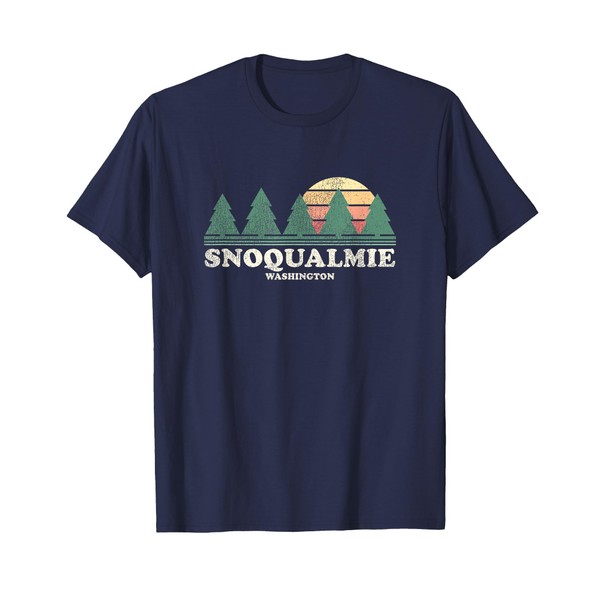 - Vintage Snoqualmie WA T-Shirt with retro sunset through pine trees design tee. Old school distressed & worn looking retro graphic tees & t-shirts makes an awesome holiday, Christmas presents & gift for those who love Snoqualmie.