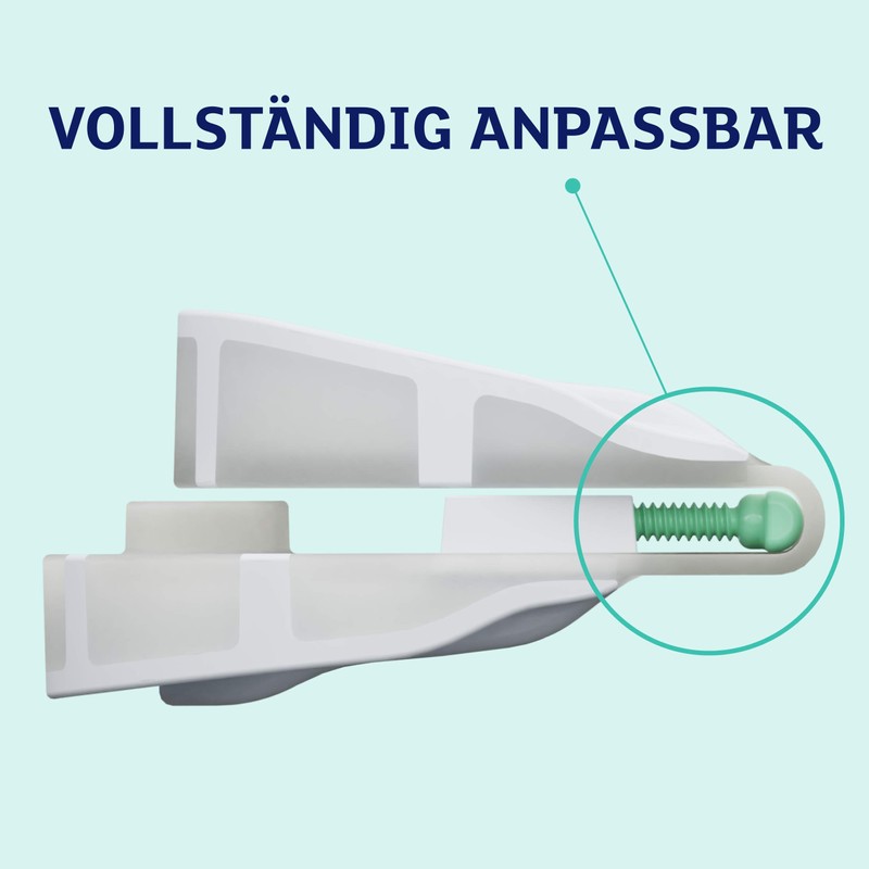 The fully adjustable design keeps your lower jaw in the right position while you sleep. This opens the respiratory tract and helps you breathe easily and calmly. The Snoreeze snoring splint adapts to your teeth and helps you get a grip on snoring and sleep apnea.