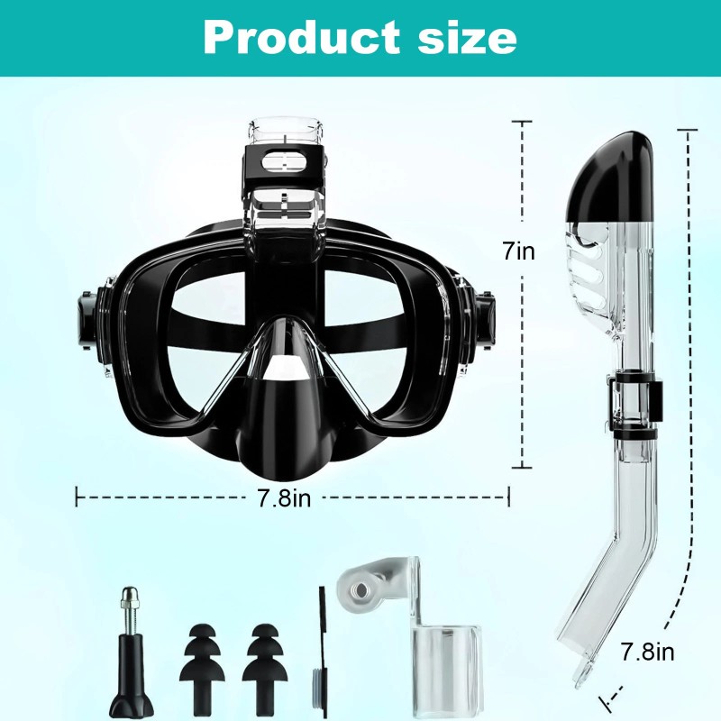 [180 degree panorama] The snorkeling diving mask is made of professional high-definition anti-fog flat lens, which has a wide field of vision, high light transmittance and no dizziness. Provide you with high definition and underwater view. The diving snorkeling mask has a camera mount designed to help you record every beautiful moment underwater.