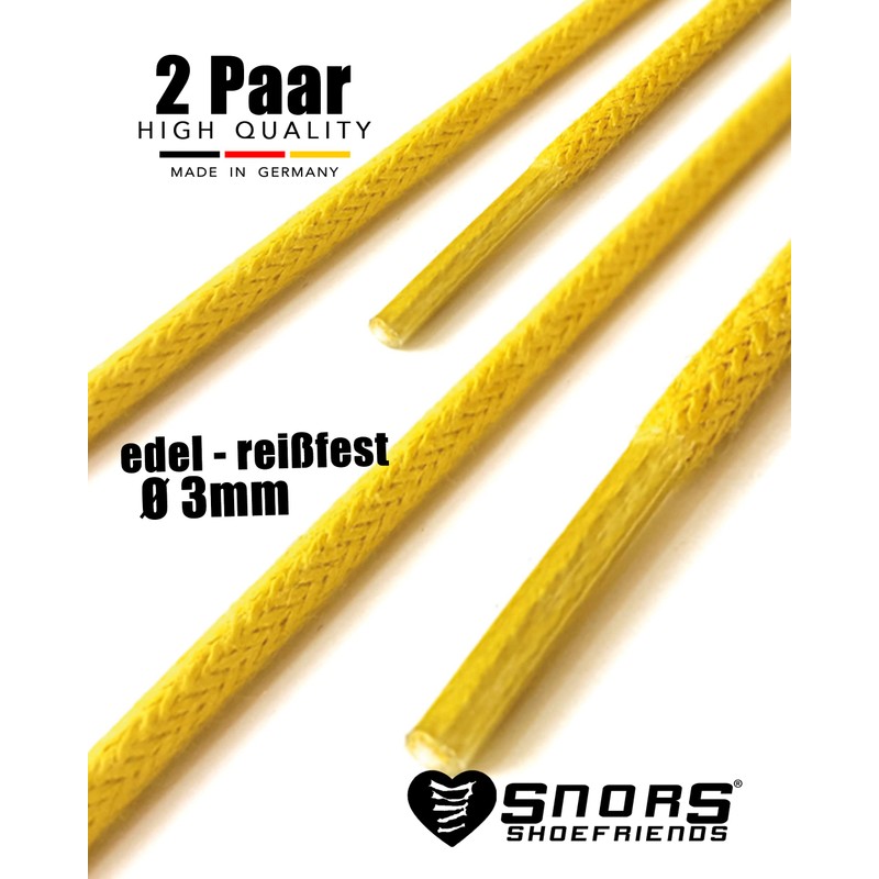 SNORS 2 Pairs of Waxed Round and Flat Shoelaces, 18 Colours, 45-150 cm, Tear-Resistant, Stable, Cotton Shoe Laces for Business, Leather Shoes, Boots, yellow