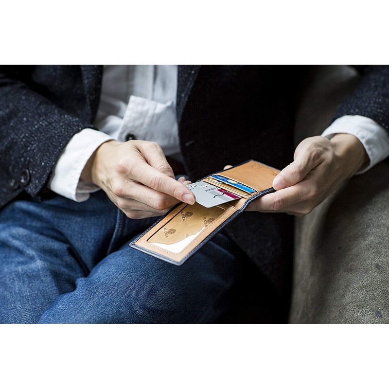The fine texture and soft feel of the calf leather is unique to the calf, giving it the elegance that you deserve for a long time. Two clear card pockets on the outside and inside It is convenient to use as an IC commuter pass that may be present on the outside or an employee ID on the inside.