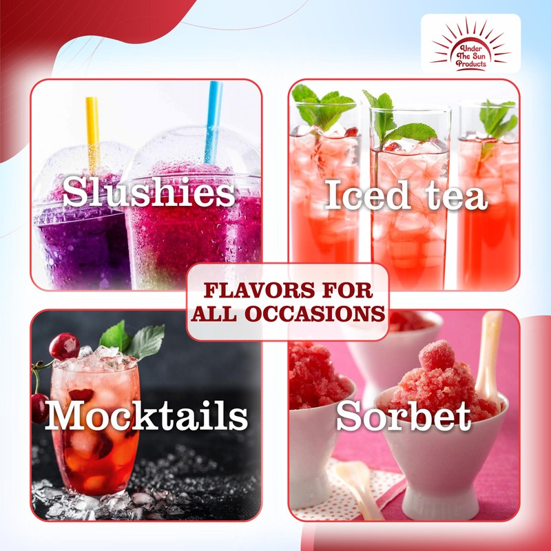 - Each paclage comes with 1qt (32oz) of each flavor Cherry and Blue Raspberry.
