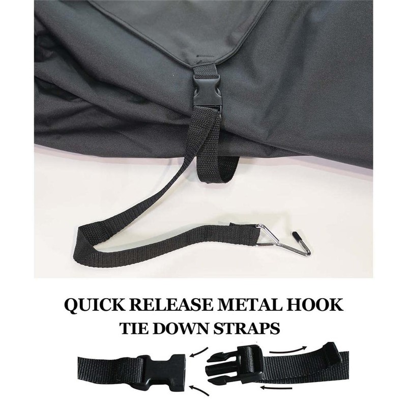 - Fuel access opening near handlebars. Easy on, easy off bungee, storage bag included.