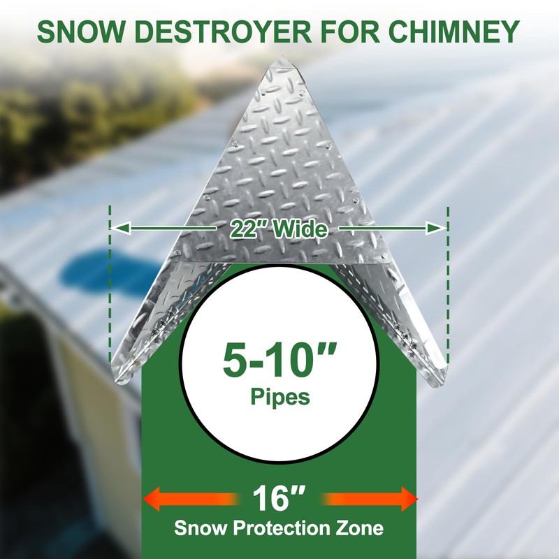 - 【Fits 6" & 8" & 10" Chimneys】Designed to fit 6"/8"/10" wood/metal stove chimneys.The Snow Splitter Supports 500 lbs of snow load or ice force, ensuring chimney stability.