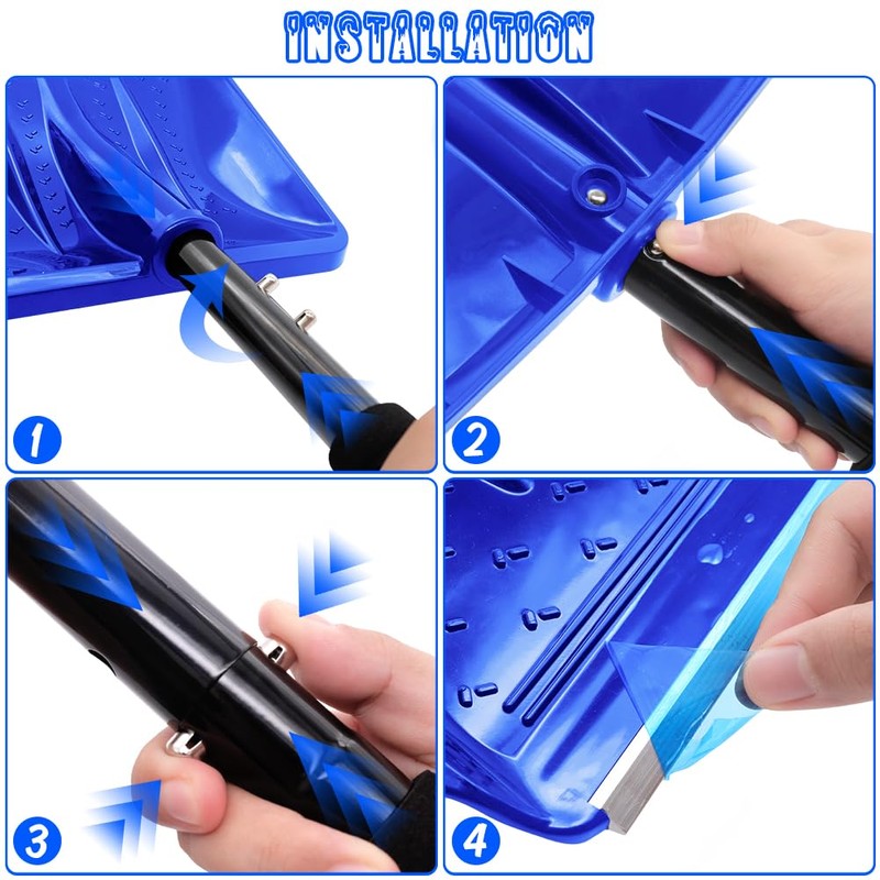 - 【ERGONOMIC DESIGN】The shovel board also has two screw reinforcement holes, making it difficult for you to fall off during use. We provide you with an ergonomic D-shaped handle that can be hung on a hook when not in use. In addition, the aluminum handle of the snow shovel also has a foam handle, which can enhance the friction between the palm and the handle to achieve the effect of anti-skid.