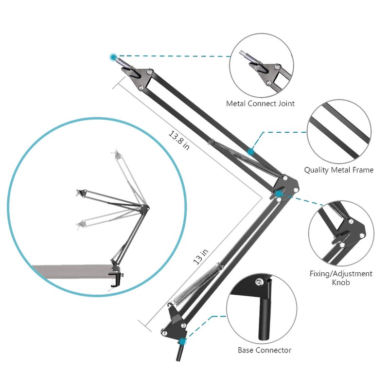 - Stability: Mic boom arm is dual suspension springs on each boom arm, prevent the microphone from shaking, sinking and making noise.