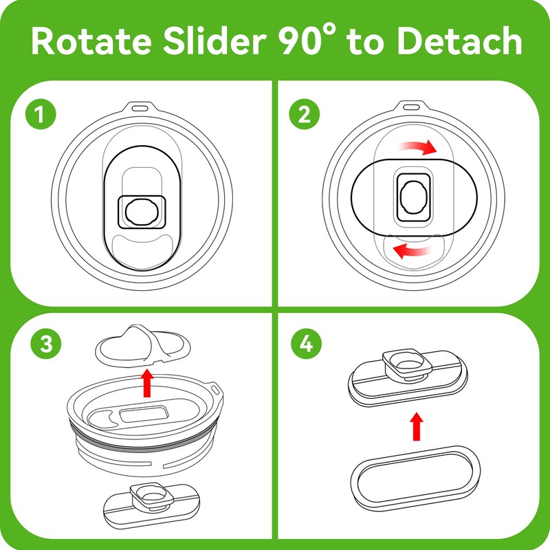 - 【EASY CLEANING】Just rotate the slider 90° for quick and easy separation, making it simple to clean both the lid and the cup. No more hassle with complicated parts or hard-to-reach areas.
