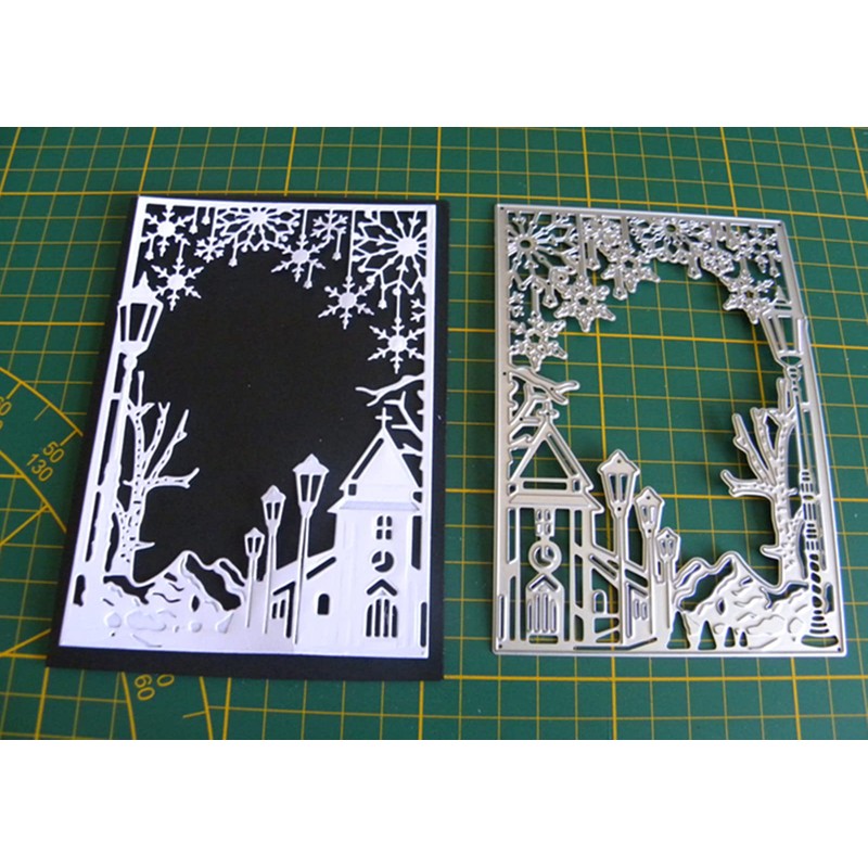 - Color&Size:Color: Silver.Size:14.4×9.8cm/5.67''x3.85''. PACKAGE INCLUDE: The cutting dies set contains 1pc/set Snowflake Castle Rectangular pattern metal stencils.