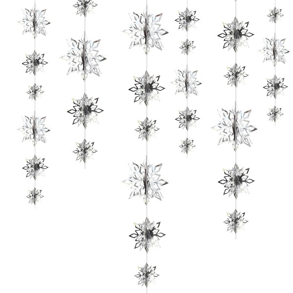- Package:This snowflake garlands suit contains 1pcs,total 2.4 meters,sewn together with silver thread.Perfect for birthday party decorations