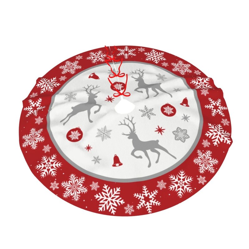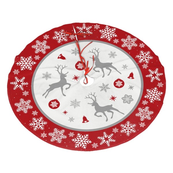 Snowflake Reindeer Red Christmas Tree Skirt 48" Xmas Tree Mat for Christmas Decorations Holiday Ornaments