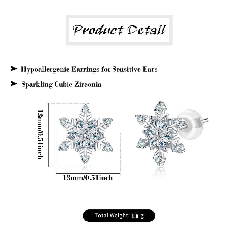 Snowflake Stud Earrings for Women 925 Sterling Silver Hypoallergenic CZ Studs Earrings for Sensitive Ears Chrismas Gifts.
