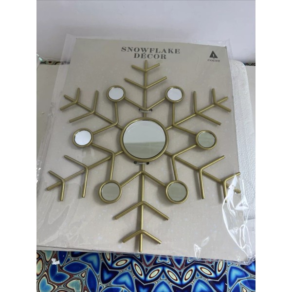 Snowflake Wall Art 10” X 10” Gold Tone With Mirrors (5 Available)