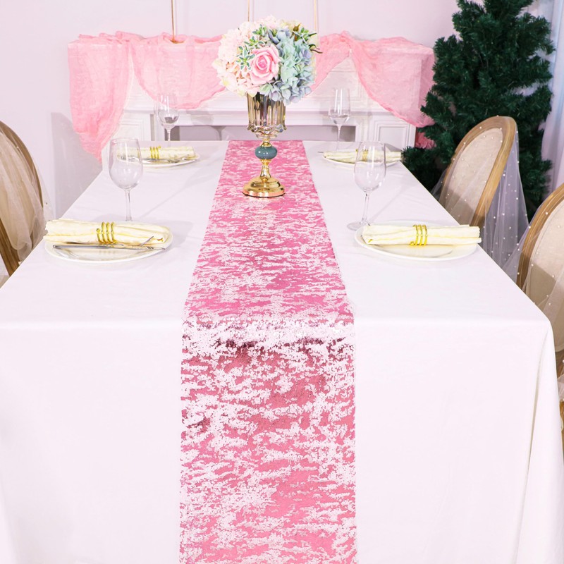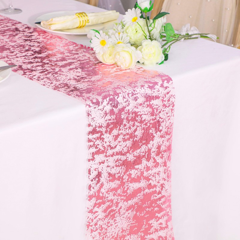 - 【Unique Design】The pink runners with mesh design and sparkle metallic foil, have a metallic finish that adds a luxurious glitter touch, infusing glamour and romance into any setting. They're perfect for elevating your dining experience and captivating your guests