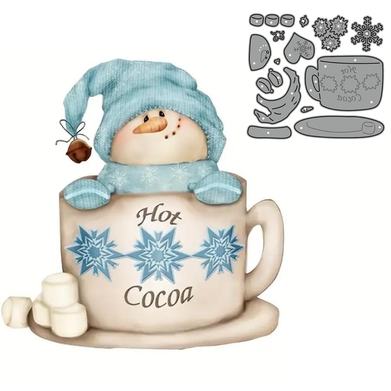 - ♛Pattern&Size: Snowman Cocoa Cup shape, 10.5 x 9.5cm/4.13 x 3.74inch(Approx). Snowman Cocoa Cup Metal Dies Cut Stencils for DIY Scrapbooking Photo Album Decorative Embossing Paper Dies for Scrapbooking Card Making Supplies.