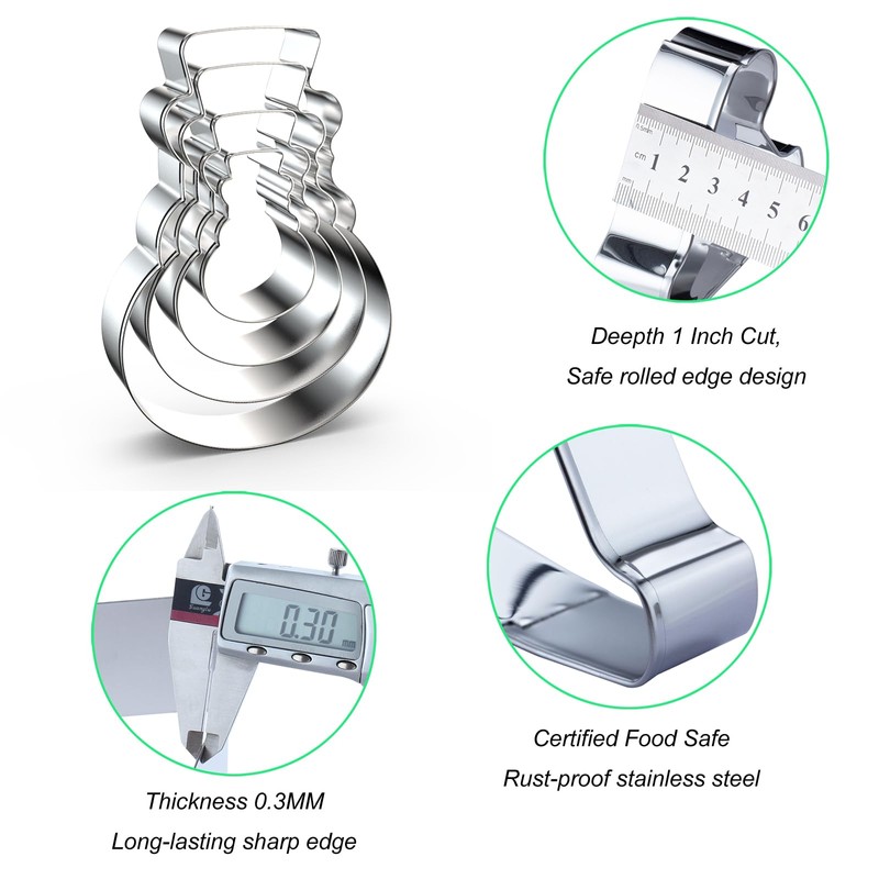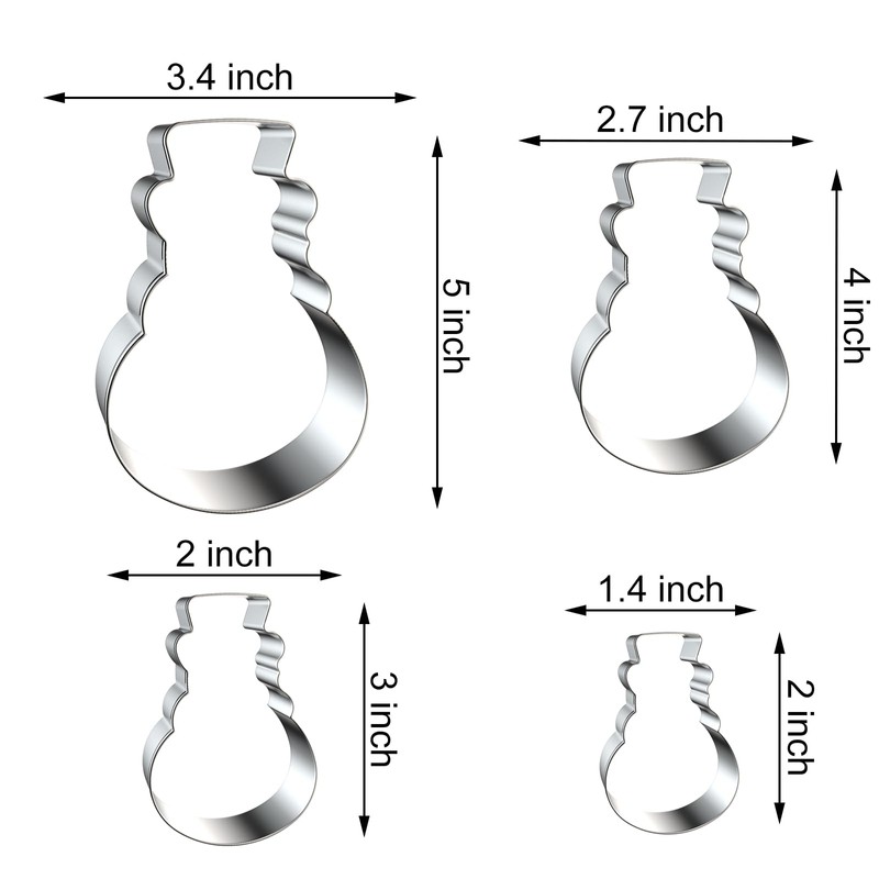 - 4 PIECE SNOWMAN CUTTER SHAPES SET: Biscuit cutters kit including snowman shapes molds in 4 different sizes ( 5", 4", 3", 2" ). A good DIY necessary cutter for making cute homemade christmas snowman shaped cookies.