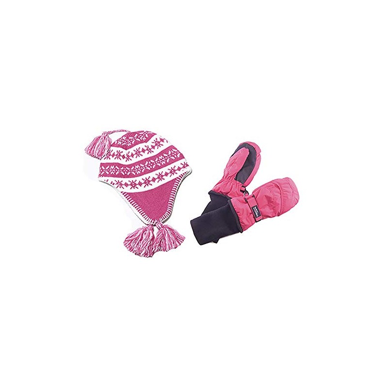 SnowStoppers Mittens and Sherpa Knit Hat Sets (Fuchsia/White, Small)