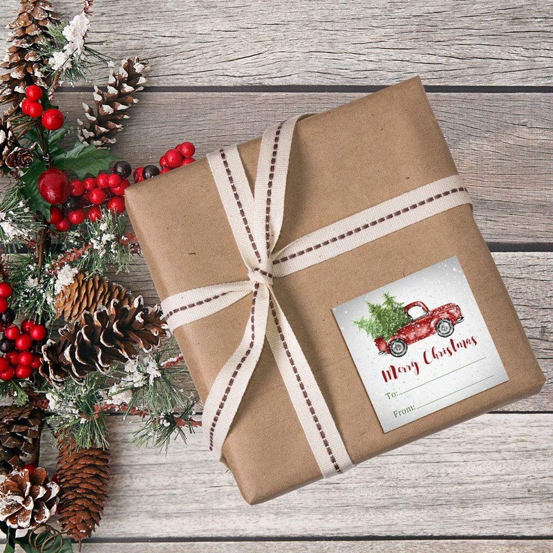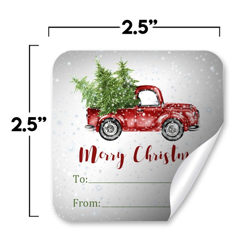 Snowy Pickup Truck Christmas Tag Stickers, Set of 12 2.5 X 2.5 Square Holiday Present Labels by AmandaCreation