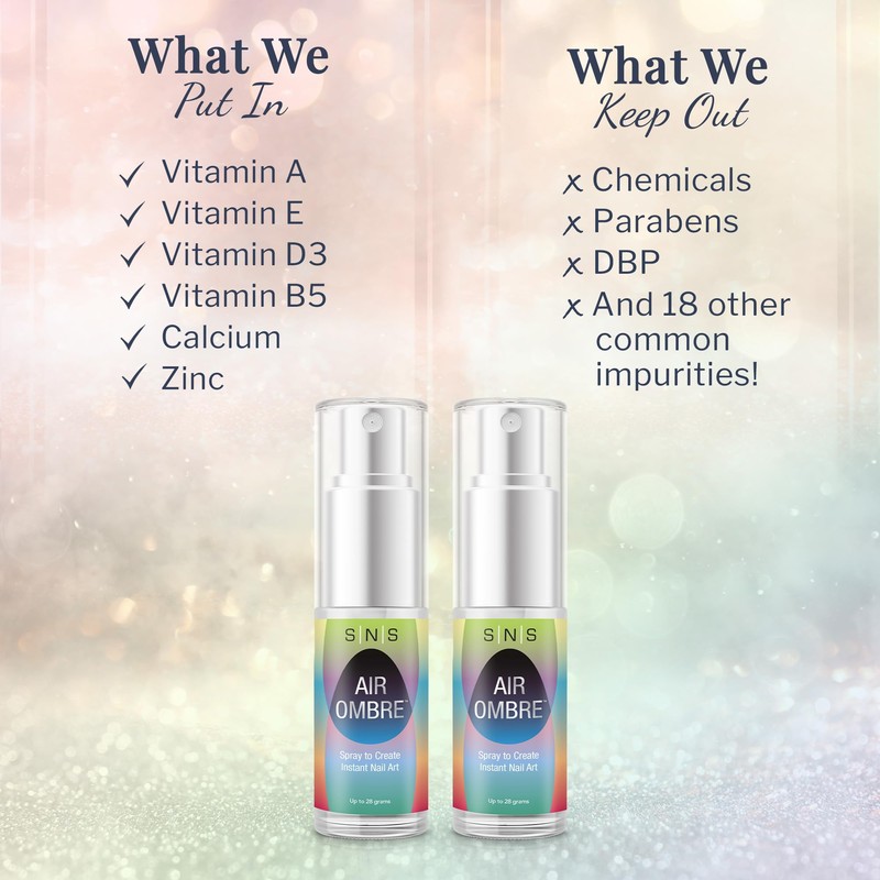 - EASY SPRAY-ON OMBRE MANICURE: Create ombre manicure designs by SPRAYING from a bottle! SNS Air Ombre is an innovative spray-on technology designed for everyone from beginner nail techs to DIY enthusiasts. Spray on the color along with one of our base shades in either dip powder, gel nails, or acrylics for easy, beautiful nail art. Color: Peach Coral