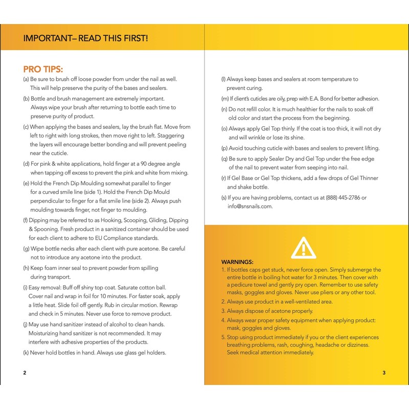 - đź’… NON-RETURNABLE PRODUCT DUE TO HYGIENE AND HEALTH: We do recommend that customer knows how to use or follow the instruction how to prepare and apply the SNS Nails product. Due to health and hygiene, we do not recommend this for return. Contact us for instruction and help how to use these products in the proper professional trained nail technician.