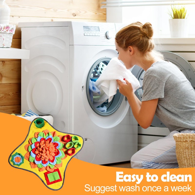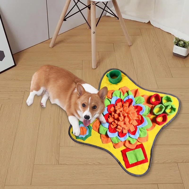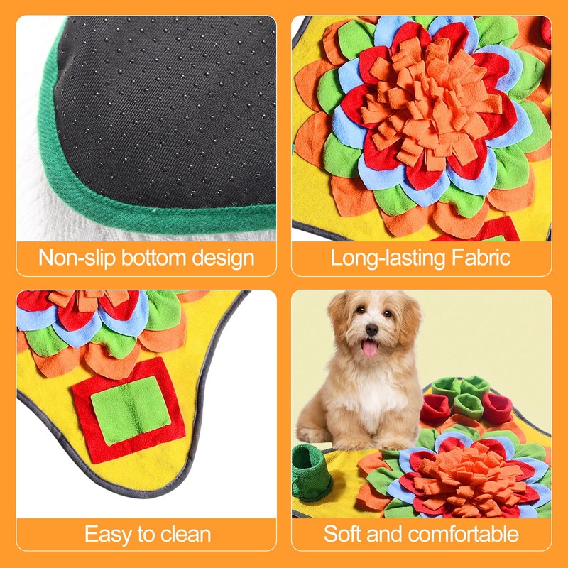 Crafted from soft, skin-friendly felt material, the mat is carefully stitched with layered fabric flaps and hiding spots. Simply tuck in your dog’s favorite dry food or treats, and let them enjoy the sniffing challenge. This promotes slower feeding, improves digestion, and keeps your pet focused and engaged.