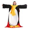 Snug Rug Christmas Penguin Fleece Blanket with Sleeves, Black/White