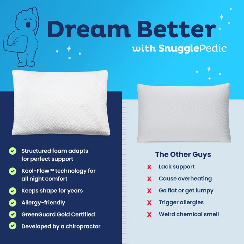 Snuggle-Pedic Shredded Memory Foam Pillow - The Original Cool Pillows for Side, Stomach & Back Sleepers - Sleep Support That Keeps Shape - College Dorm Room Essentials for Girls and Guys - Queen