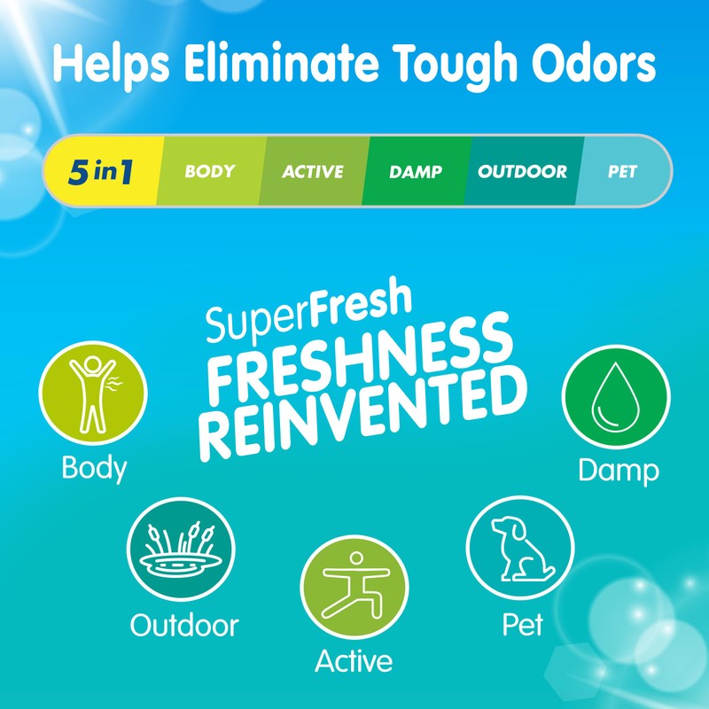 - Snuggle SuperFresh Original 3in1 Odor elimination to help fight body, outdoor, and pet odors