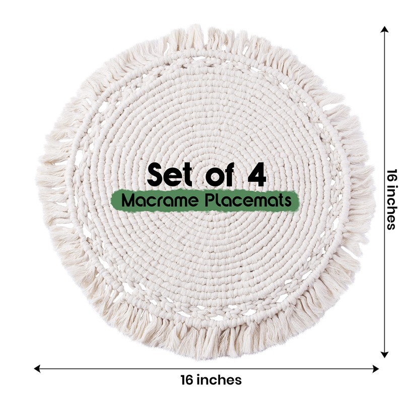 - 100% HANDMADE macrame placemats. From its cute tassels and farmhouse pattern, each braided piece is woven with care. Perfect cream placemats for any boho dining table