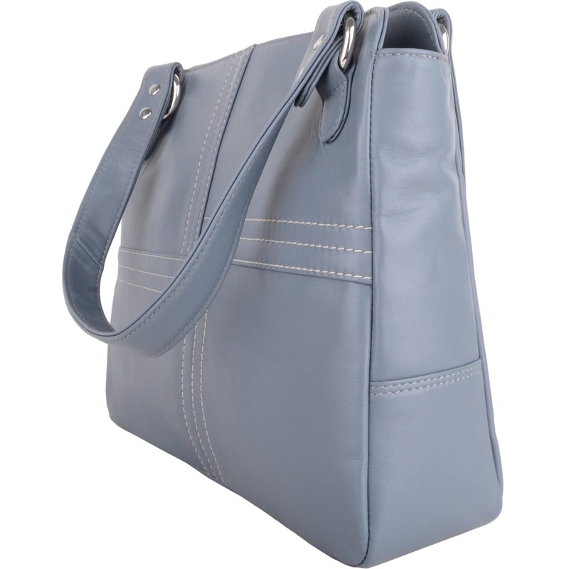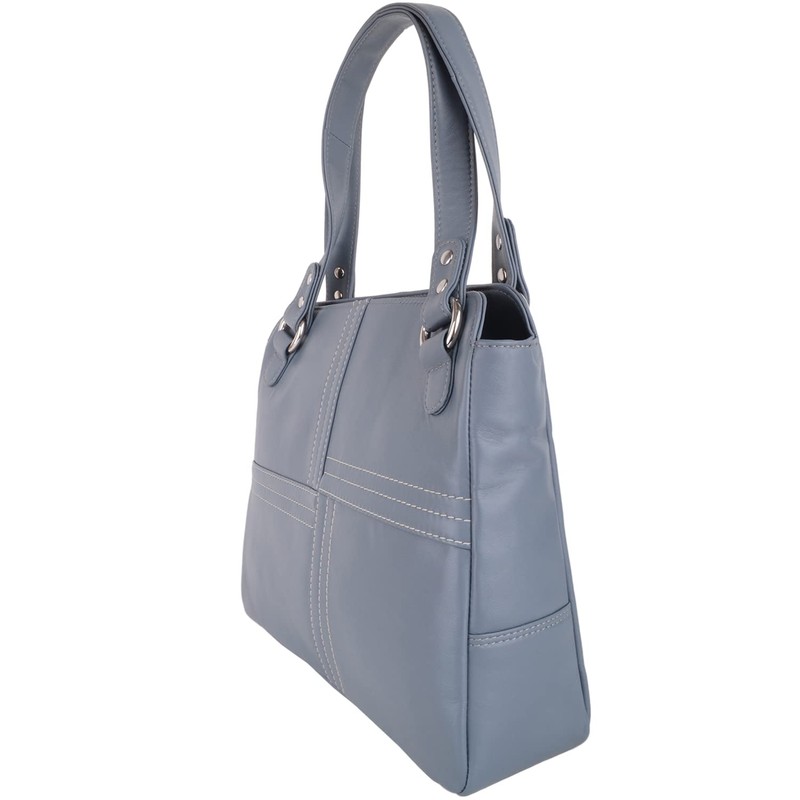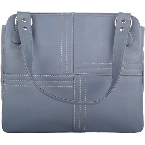 SNUGRUGS Womens Large Genuine Soft Leather Shoulder Contrast Stitch Handbag - Denim