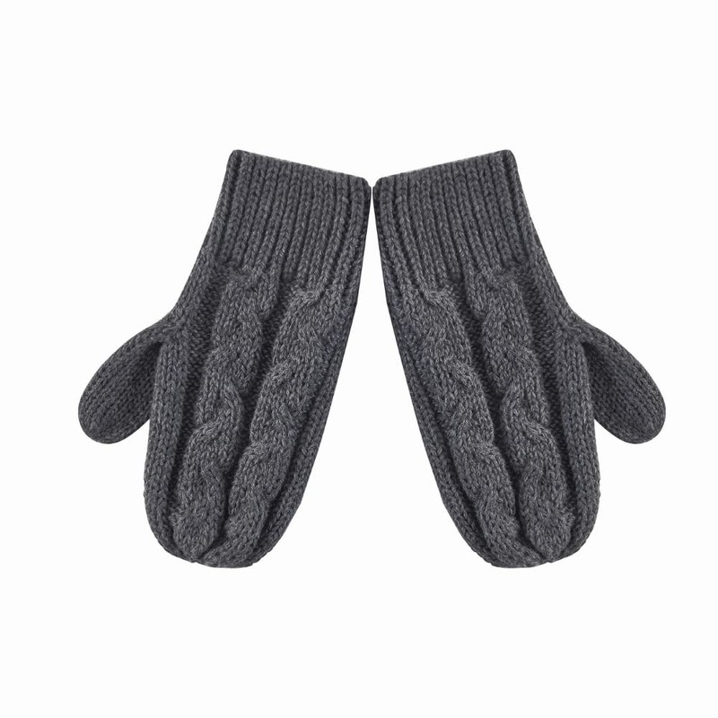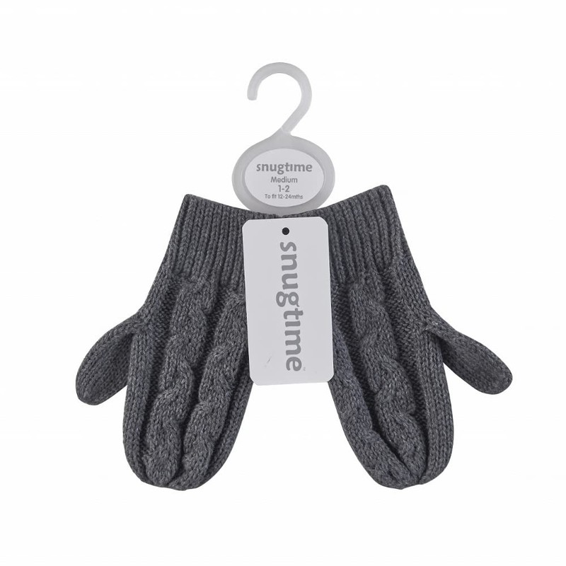 Snugtime Cotton Cable Knitted Mitten, Charcoal, Small