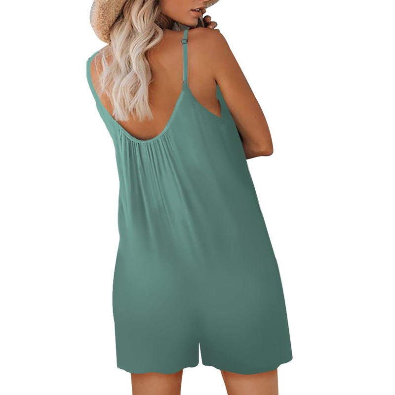 snugwind Womens Rompers Casual Sleeveless Spaghetti Strap Shorts with Pockets X-Large Light Green