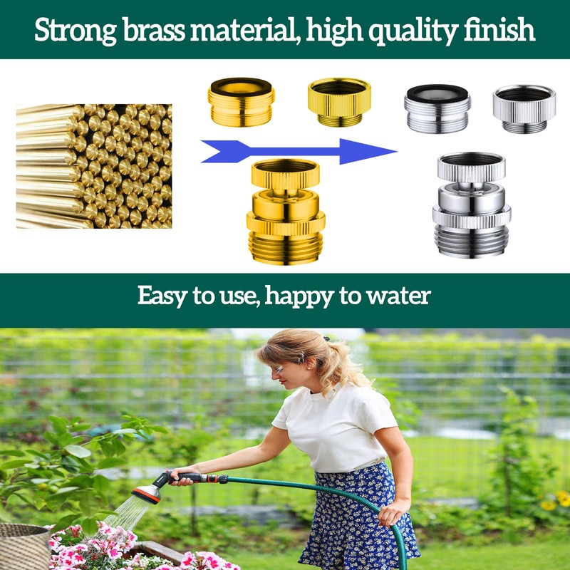 - 【 Garden hose to sink faucet adapter 】 : The 3/4"GHT internal threaded to M22 (55/64"-27) external threaded adapter is used to connect to the outdoor faucet, and the M24 (15/16"-27) external threaded to M22 (55/64"-27) external threaded adapter is used to connect to the M24 (15/16"-27) internal threaded faucet. Freestanding M22 (55/64"-27) internal thread for connection to M22 (55/64"-27) external thread faucet.