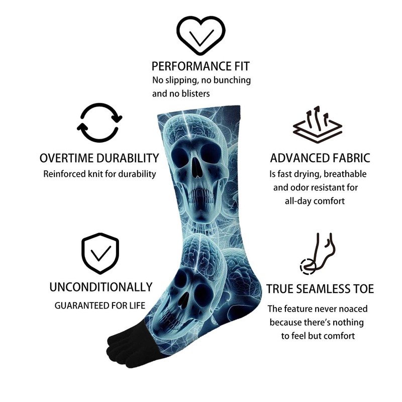 • ONE SIZE FITS MOST – FUNNY PATTERN: These unisex toe crazy socks feature a skull design and fit men’s sizes 7.5–9.5 and women’s sizes 8.5–10.5. With a stretchy, durable, and flexible construction, they comfortably adapt to various foot shapes. Whether you’re looking for toe socks for men or toe socks for women, these socks deliver urban flair and reliable comfort for everyday wear