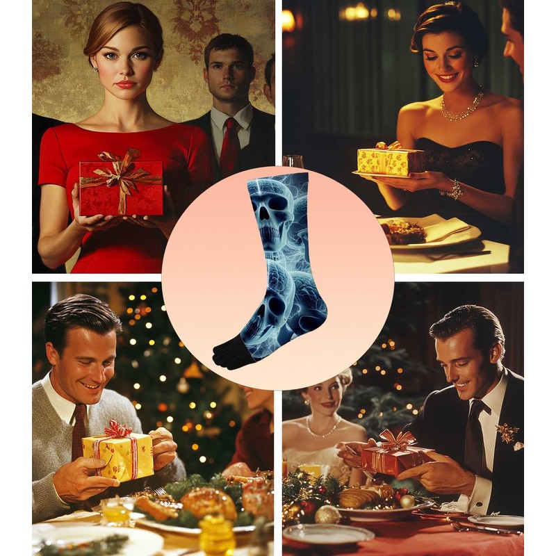 SnuYucto Funny Toe Socks for Men and Women, Novelty 5 Toe Design with Skull, ...