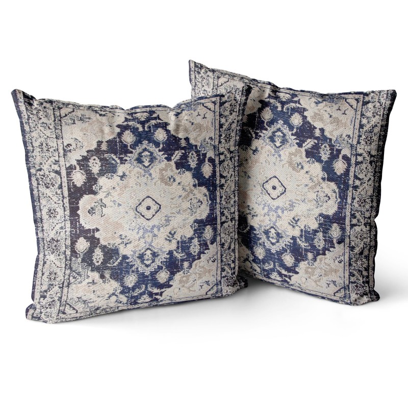 Snycler Boho Throw Pillow Covers 16x16 inch Set of 2 Boho Rug Carpet Double Sided Pattern Cotton Soft Pillow Case Cushion Cover Pillowcase for Couch Sofa Bed Decorative (Navy Blue)