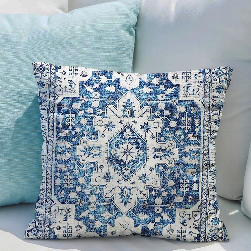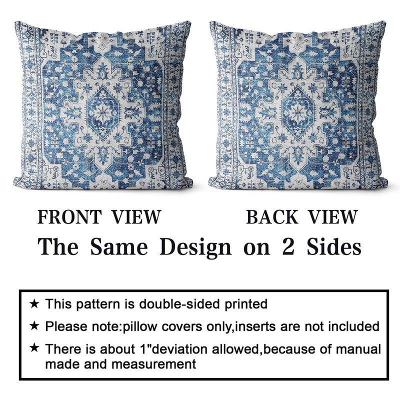 Snycler Boho Throw Pillow Covers 20x20 inch Set of 2 Blue Boho Rug Carpet Double Sided Pattern Cotton Soft Pillow Case Cushion Cover Pillowcase for Couch Sofa Bed Decorative