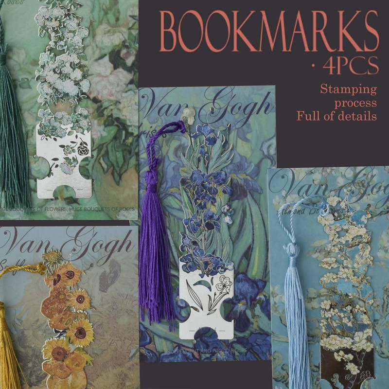 Snycler Oil Painting Hollow Metal Bookmarks with The Fringe, Pack of 4PCS, Reading Bookmarks Book Clips Book Clasps Exquisite and Beautiful Suitable as Gifts(Painting-1